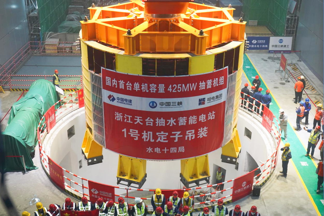 3月24日,浙江天臺抽水蓄能電站首臺(1號)機組定子順利吊裝成功、下水庫順利下閘蓄水,標志著這項重大新能源工程取得兩項突破性進展,由此邁入建設攻堅的關鍵階段。 電站首臺發(fā)電機定子機座高6.36米,最大直徑8.05米,鐵芯由15.2萬張0.5毫米厚的硅鋼片疊裝而成,整體起吊重量為465.5噸,主要由機座、鐵芯、繞組等部件組成,是機組進行機械能與電能轉換的核心部件。水電十四局安裝團隊自2024年10月16日開始機座組圓焊接,在地下廠房安裝間進行組裝、疊片、線棒下線、耐壓試驗等數(shù)十道安裝工序,所有裝配檢測和試驗驗證數(shù)據(jù)優(yōu)良,一次性通過所有檢測,提前37天完成施工任務。本次吊裝采用2臺300噸橋機進行并車吊裝,吊裝前進行了細致檢查、交底、試吊等,過程中嚴格按照吊裝方案執(zhí)行,切實履行崗位安全生產責任,確保了定子安全順利吊裝到位。 電站下水庫大壩采用混凝土面板堆石壩,大壩高71米,壩頂長度420米,壩頂寬度8米。總庫容1076萬立方米,正常蓄水位庫容936萬立方米、調節(jié)庫容718萬立方米。蓄水前,項目部組織人員對庫底建筑余料和腐殖層進行了深度清理。水庫首次蓄水主要依靠截流蓄積和始豐溪引水。為保障庫區(qū)水質,后期主要利用“自然補給+循環(huán)利用+智慧調控”的形式。既依托天臺山的自然降水優(yōu)勢,又通過尖端的工程技術實現(xiàn)水資源零浪費。未來,隨著電站全面投運,這套“水、能共舞”系統(tǒng)將成為長三角水資源集約利用的標桿。 該項目總投資107.4億元,額定水頭724米,為全球在建水頭最高,總裝機容量170萬千瓦,其中單機容量全國最大,預計2026年9月全部機組投產發(fā)電后,年發(fā)電量可達17億千瓦時,每年可節(jié)省浙江電網(wǎng)電力系統(tǒng)的燃煤消耗量約52萬噸,減少二氧化碳排放約104萬噸。電站建成后,將承擔浙江電網(wǎng)并兼顧華東電網(wǎng)的調峰、填谷、調頻、調相、儲能及緊急事故備用等任務,對于優(yōu)化電源結構、提高電網(wǎng)安全穩(wěn)定運行能力、實現(xiàn)“雙碳”目標具有重要意義。 |