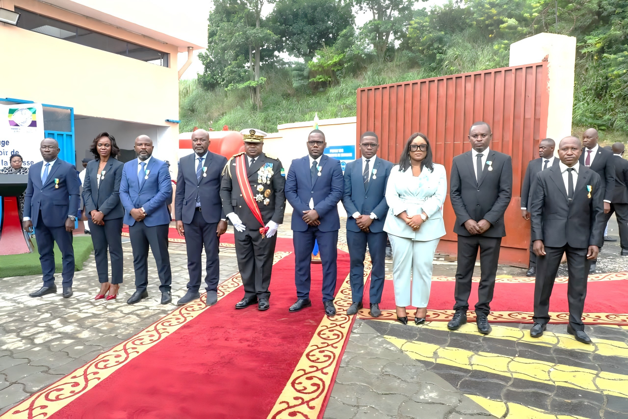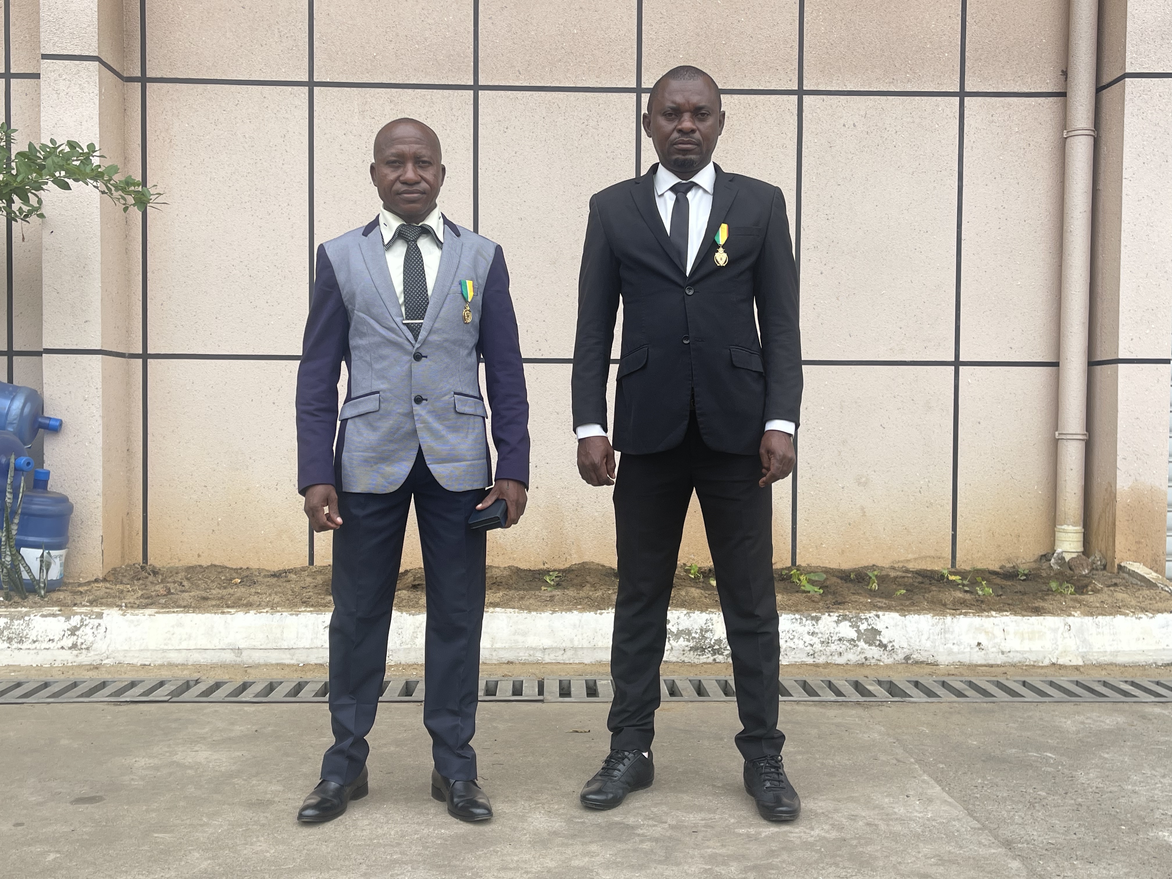 6 月 16 日,在加篷共和國(guó)榮譽(yù)勛章頒授儀式上,加蓬總統(tǒng)恩圭馬親自將閃耀的“共和國(guó)榮譽(yù)勛章”分別佩于水電十六局加蓬利伯維爾城市供水管網(wǎng)項(xiàng)目部當(dāng)?shù)貑T工阿發(fā)(TSAMBA MOUELE RAPHAEL)和優(yōu)博(YOBO Ghislain)胸前。這枚象征國(guó)家最高榮譽(yù)的勛章,不僅是對(duì)阿發(fā)和優(yōu)博個(gè)人卓越技能與杰出貢獻(xiàn)的至高肯定,更是對(duì)中國(guó)電建在加蓬深度推行人才本地化戰(zhàn)略、賦能當(dāng)?shù)匕l(fā)展的生動(dòng)禮贊。政府部門(mén)重要成員和PIEAPAL項(xiàng)目相關(guān)人員出席了儀式,當(dāng)?shù)刈畲竺襟w《團(tuán)結(jié)報(bào)》及多家主流媒體進(jìn)行采訪與報(bào)道。
