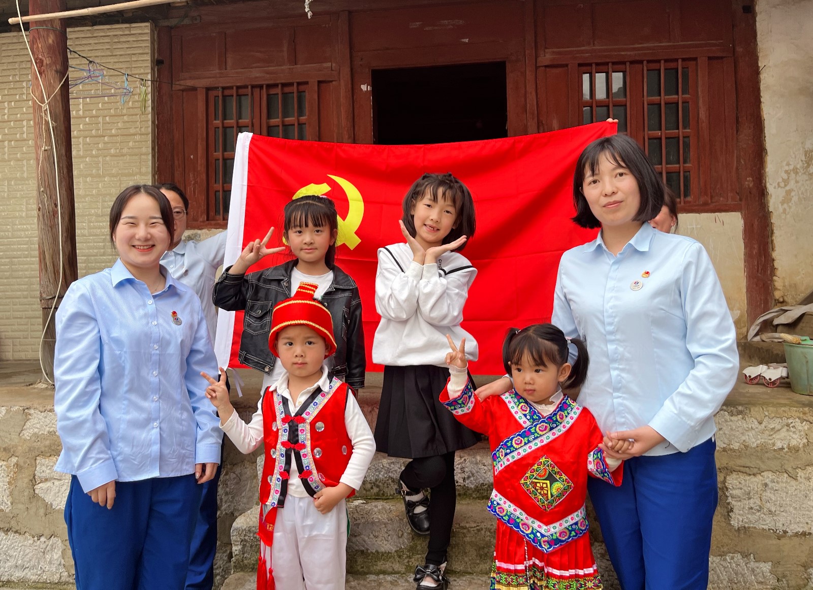 經過提前了解,項目黨員、團員青年代表來到瀘西縣丁合村,走家入戶與少數民族留守兒童悉心交流,詢問他們的學習生活情況和家庭情況,并帶領項目職工子女與村落里的3名少數民族留守兒童開展聯誼活動,拉近彼此距離,增進情感融合。青年代表首先為孩子們表演了歌唱、舞蹈等少兒節目,組織帶領孩子們玩“獨木橋”、“丟手絹”等趣味游戲。一開始還略顯羞澀的孩子在幾輪游戲過后開始積極大膽表現,陣陣稚嫩的歡笑聲不絕于耳。