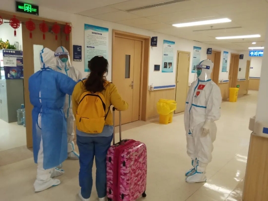 16日下午2點,黃河三門峽醫院副院長杜睿帶領王宏瑾、任靜、嚴佩林、楊林清、李凡、霍偉偉、尚佳、駱瑞、薛鵬松9名護理人員以及航天中心醫院的醫護人員正式進駐上海第四人民醫院。