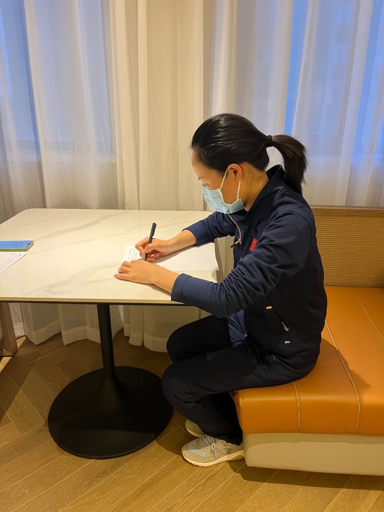 特別暖心的是,4月16日是隊員姚佩和劉園園的生日,酒店為她們制作了生日賀卡,在酒店大屏幕上滾動播放。醫療隊員們也在群里紛紛發來生日祝福,讓這個生日過得特別難忘而有意義。