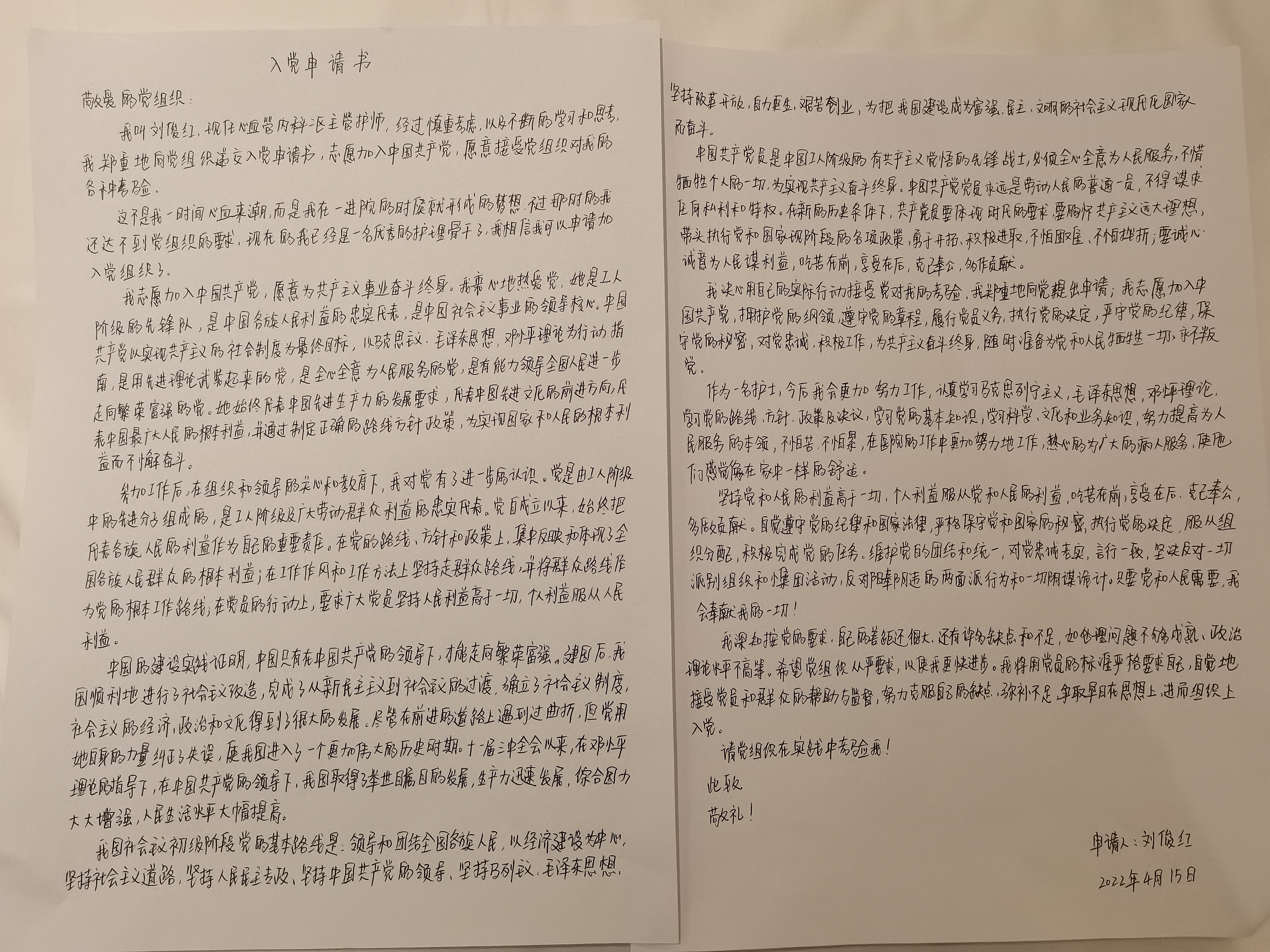 一名黨員就是一面旗幟,一個支部就是一座堡壘。 在此次上海市疫情防控過程中,無數共產黨員首先站出來,敢于沖上去,彰顯了黨員本色。 其中,有一支來自中原腹地的醫療隊伍——中國電建水電十一局黃河三門峽醫院援滬醫療隊,他們初一抵滬,就緊急部署,快速行動,高高擎起了鮮紅的黨旗。 “用最好的年華,回饋祖國、回饋黨”? “今天,我鄭重地遞上我的這份入黨申請書,這將是我人生歷程中最莊嚴、最神圣的事情,是我對人生的一次莊重宣誓……” “我是來自黃河三門峽醫院急診科的一名護士,一直以來就有入黨的想法,這次來到疫情一線,我被大家積極向上的態度感染,特別是同隊的老師給我們的鼓勵和支持?,F在是祖國需要我們的時候,我們應該義無反顧、不辱使命。所以,我決定在這個時候申請加入中國共產黨,用最好的年華,回饋祖國、回饋黨……” “我是全國千千萬萬個抗疫一線人員中的一個,在國家和人民最需要我的時候,也正是我向黨組織靠近的時候。前方就是戰場,我要把這次援滬抗疫的攻堅戰,當做鍛煉自己的機會,有險我先上,有困難我來扛,直到抗疫勝利!” 4月15日晚17時33分,央企援滬醫療隊成立臨時黨委并召開領隊會議,中電建援滬醫療隊隊長、黃河三門峽醫院院長涂學亮作為臨時黨委書記,帶領11位黨委委員重溫入黨誓詞。 與此同時在駐地,孟閣、呂倩倩、杜海音、劉俊紅、蔚苗苗等25名隊員顧不上一天的勞累,奮筆疾書。她們深受身邊黨員的激勵和鼓舞,決心向黨組織靠攏,用實際行動接受黨的考驗。 一份份入黨申請書言辭懇切、火熱鏗鏘,展現了抗擊疫情的決心和信心。 “我是黨員,我就要先上” “我是黨員,也是醫務人員,國家和人民需要我,我就要先上,這是我對黨的誓言,什么時候都不會改變!” 中電建援滬醫療隊感控組組長蔣榮榮說。 此次援滬抗疫已經是蔣榮榮第四次“出征”,在此之前,她還參加了海外巡診,2個月前才回到工作崗位和家人身邊。當得知上海需要支援時,她又一次義無反顧、聞令而動。出發時,面對大寶 “你不是說這是最后一次出去了嗎?哼!說話不算話!”的生氣抱怨,和二寶“我不要媽媽去上班,你別去上海,就要媽媽陪著我。媽媽,我可愛你了,非常愛你!”的抱腿撒嬌,面對疫情時從不畏縮的她數次流下眼淚。 同事們說起蔣榮榮也都豎起大拇指,她用挺身而出的實際行動踐行了入黨誓詞,數次沖鋒在疫情防控第一線,從來不講條件,她發揮了黨員的模范帶頭作用,也感染著身邊的人。 李萌雖然年輕,但已是一名抗疫“老將”。 2020年,年僅27歲的她在新冠病毒肆虐的時候,極力說服家人,毅然報名參加了醫院援鄂醫療隊,成為黃河三門峽醫院援鄂醫療隊中年齡最小的成員。當她在武漢前線看到周圍的黨員都沖鋒在前、無畏奉獻時,在深受感動之余,也不由得心生羨慕,想像他們一樣,也成為一名光榮的中國共產黨員。于是,她鄭重地向黨組織遞交了入黨申請書,并在2020年2月27日如愿成為一名預備黨員。在順利完成援鄂任務返回不久,她又積極響應醫院號召,參加了援外巡診隊,為電建海外員工的身體健康保駕護航。她說,看著埋頭書寫入黨申請書的隊友們,仿佛看到了當初援鄂戰疫一線上那個一心向黨組織靠攏“火線入黨”的自己,不由地信心滿滿、熱血沸騰。 每一名優秀的共產黨員都是標桿,踐行著自己的鏗鏘誓言,把不畏艱險、沖鋒在前、勇挑重擔、堅強無私的品格和精神傳遞給了更多的人。 身為黨員的中電建援滬醫療隊醫療組組長王宏偉,兩次到海外項目參加巡診,預備黨員楊林清也曾參加海外巡診工作。他們用實際行動證明了“我是黨員我先上”不是一句口號,而是沉甸甸的責任與擔當。 “以黨員之名,投身一線、沖鋒在前” ?“我志愿加入中國共產黨……履行黨員義務,執行黨的決定,嚴守黨的紀律,保守黨的秘密,對黨忠誠,積極工作……” 4月15日上午,中電建援滬醫療隊臨時黨支部召開第一次會議,臨時黨支部書記杜睿帶領全體黨員和預備黨員重溫入黨誓詞。大家表示,面對黨旗,感到由衷的神圣和莊嚴,也更讓自己決心把疫情防控作為使命和責任,誓與疫情戰斗到底,以實際行動踐行入黨初心,筑牢保護人民群眾生命安全的鋼鐵長城。 據杜睿介紹,自4月11日接到組建中國電建援滬醫療隊緊急支援上海的命令后,黃河三門峽醫院在積極響應號召報名參加抗疫的400余名醫護人員中抽調精銳,組建了涵蓋中醫、重癥、呼吸、兒科、院感等專業在內的42人援滬醫療隊,其中黨員9名,預備黨員3名。 兵貴神速。4月12日上午,中電建援滬醫療隊組建動員大會召開,并進行疫情防控相關知識和技能培訓。隨后,經上級黨委批準,成立中國電建水電十一局黃河三門峽醫院援滬醫療隊和醫療隊臨時黨支部,以充分發揮黨組織的戰斗堡壘和黨員的先鋒模范作用。? ?“在全民抗擊新冠疫情的危難時刻,作為一名護理工作者,我希望能以一名共產黨員的身份投身一線,沖鋒在前,以一名共產黨員的標準嚴格要求自己、嚴守紀律,以一名共產黨員的責任做好表率、擔當有為,把人民群眾的生命安全和身體健康放在第一位,把疫情防控工作作為當前最重要的工作完成,心無旁騖地投入到這場與疫情的斗爭中。”?嚴佩琳滿懷深情地說。 疾風知勁草,烈火見真金。 困難時刻,總有鮮紅的黨旗高高飄揚;疫情面前,總有黨員挺身而出沖鋒在先。在這場“豫”