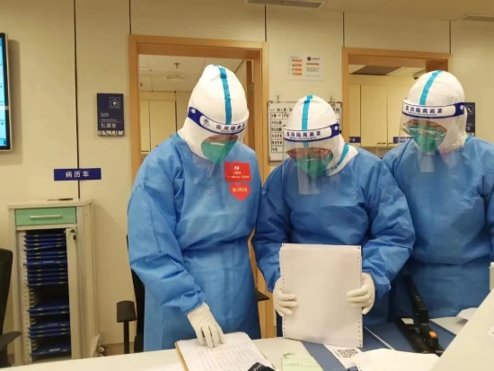在我們來之前,上海第四人民醫院16病區的醫生已超負荷工作數周,但還堅持在一線協助我們熟悉病區收治病人的流程,幫助我們熟練操作電腦系統,他們的敬業精神也時常讓我感動。