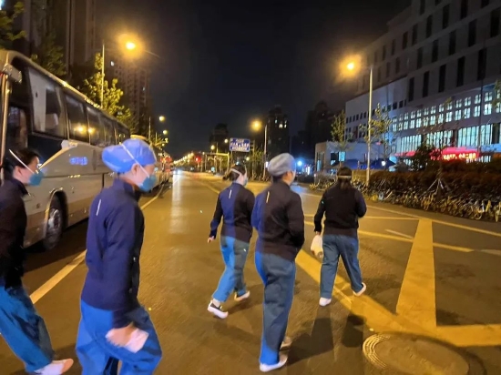 凌晨一點,我們啟程出發。望著車窗外的大上海,溫暖的燈光撫慰了一下我們焦灼的心。在上海四院,我們需要工作六個小時,加上來回路上的時間,還有穿脫防護服的時間,每天需要九個小時。期間,不能上廁所,只能穿著紙尿褲。這也是平生第一次穿紙尿褲,自己琢磨了半天才穿上。