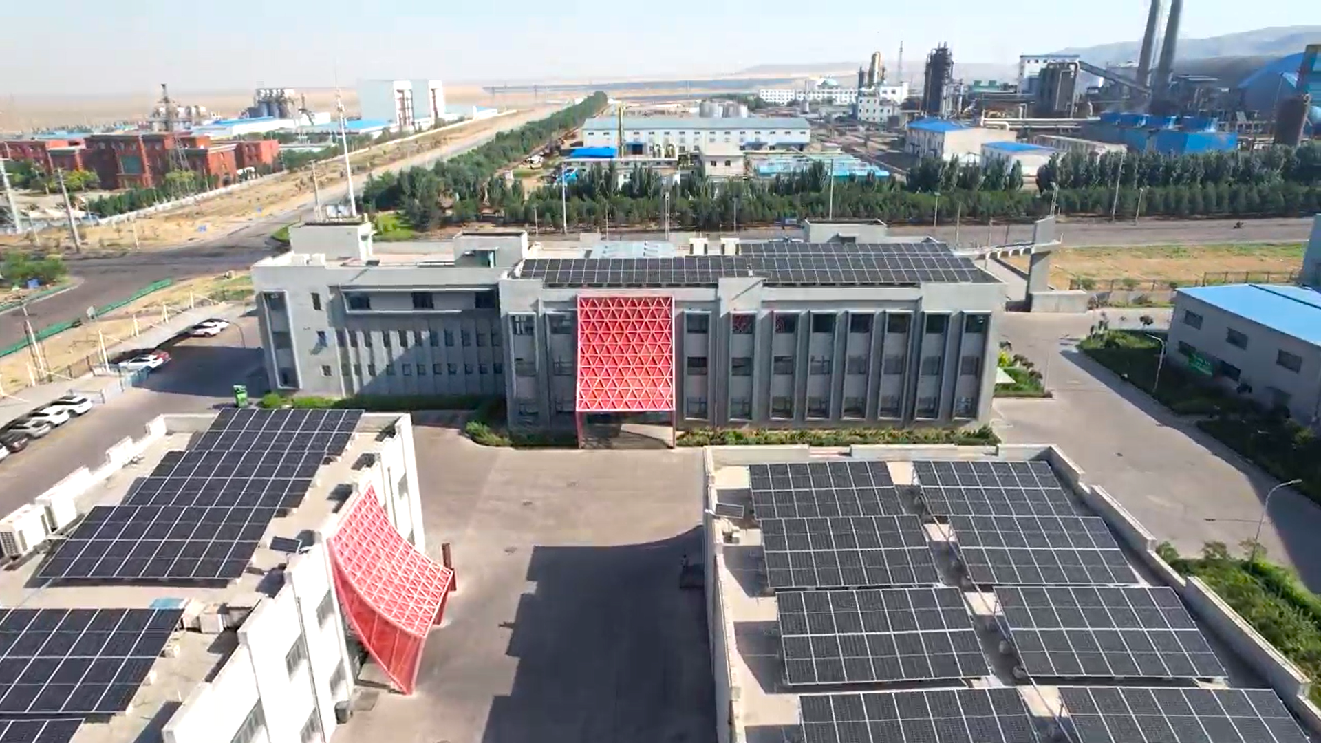 來到內蒙古自治區烏海市海勃灣區,可見黨政機關、學校、醫院、廠房、居民樓等建筑物煥發新顏,上方安裝完成的藍色光伏板連成一片,源源不斷地輸出清潔電力,閑置屋頂華麗變身為“陽光生產線”。