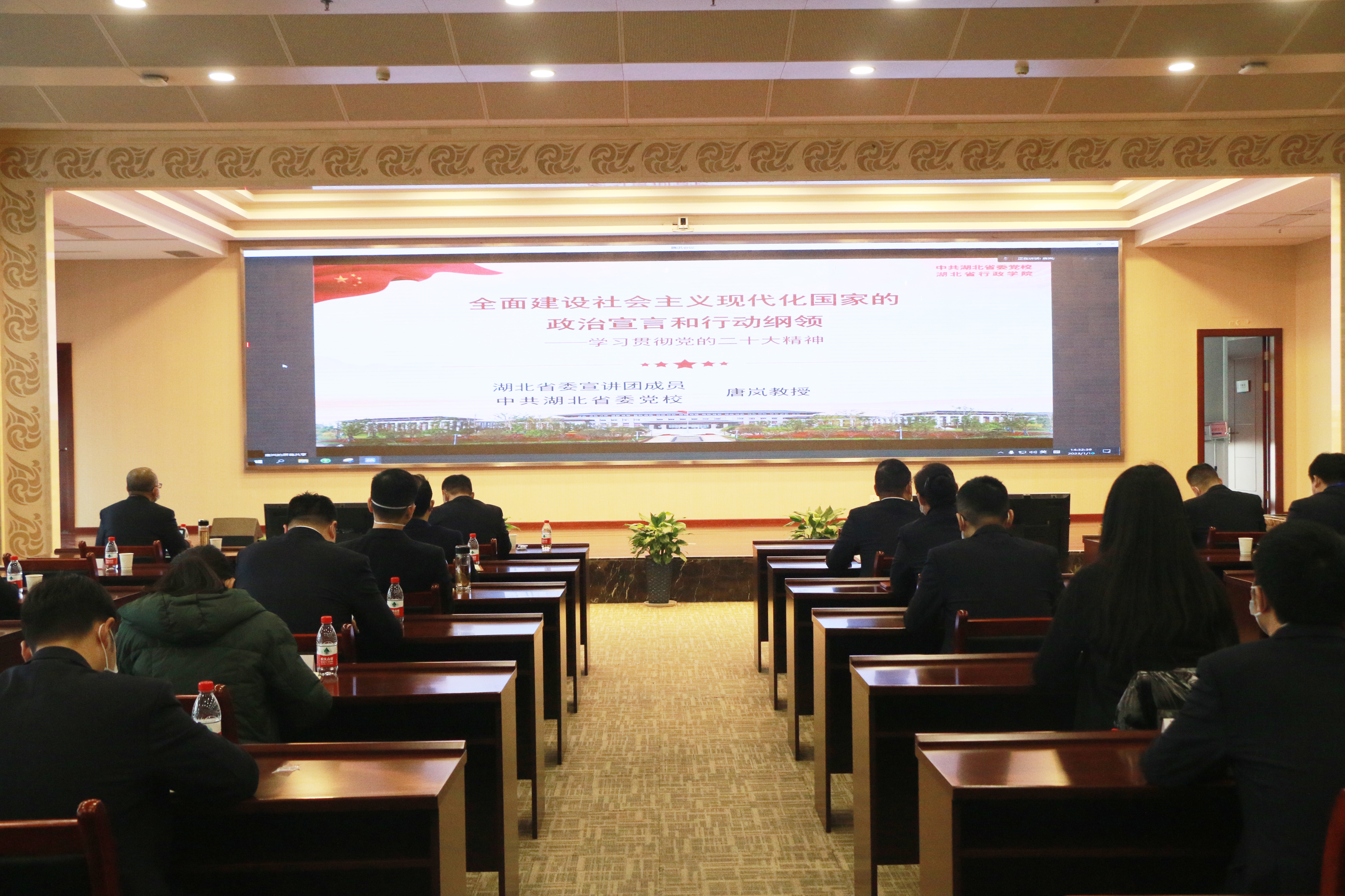 為深入學(xué)習(xí)宣傳貫徹黨的二十大精神,根據(jù)湖北省委統(tǒng)一安排部署,1月10日下午,湖北工程公司學(xué)習(xí)貫徹黨的二十大精神專題培訓(xùn)班暨湖北省委宣講團(tuán)宣講報告會順利舉辦,湖北省委宣講團(tuán)成員、省委黨校中共黨史黨建教研部主任、教授唐嵐以《全面建設(shè)社會主義現(xiàn)代化國家的政治宣言和行動綱領(lǐng)》為題通過線上方式為湖北工程公司廣大干部員工作專題報告宣講。湖北工程公司領(lǐng)導(dǎo)班子成員,總部中層以上干部,事業(yè)部、分子公司及黨群部門全體人員共計近200人通過線下或線上參加會議。 唐嵐教授結(jié)合詳實的數(shù)據(jù)、豐富的史實,從黨的二十大召開的重大意義、黨的二十大報告的框架結(jié)構(gòu)、黨的二十大報告的重點內(nèi)容三個方面,完整、準(zhǔn)確、全面地解讀了黨的二十大精神。報告從黨的二十大召開的歷史背景、基本情況、主題、議程等方面解讀了黨的二十大的重大意義;從總體情況、15個部分、歷屆黨代會報告等方面解析了報告的框架結(jié)構(gòu);從新成就、新境界、新使命、新部署、新的偉大工程五個方面闡釋了報告的重點內(nèi)容。宣講深入淺出、內(nèi)容豐富、邏輯嚴(yán)謹(jǐn)、思想深刻,對公司上下深刻理解、準(zhǔn)確把握、貫徹落實黨的二十大精神有著極大啟發(fā)和幫助。 會議就公司做好黨的二十大精神學(xué)習(xí)宣傳貫徹工作提出兩點要求:一是要堅持學(xué)深悟透,著力把準(zhǔn)精神實質(zhì)。要自覺從堅定擁護(hù)“兩個確立”、堅決做到“兩個維護(hù)”的高度,以此次宣講為契機(jī),繼續(xù)在全面學(xué)習(xí)、全面把握和全面落實上下功夫,做到學(xué)思用貫通、知信行統(tǒng)一,推動學(xué)習(xí)宣傳貫徹黨的二十大精神往深里走、往心里走、往實里走。二是要堅持落地見效,推動公司高質(zhì)量發(fā)展。要用黨的二十大精神統(tǒng)一思想、統(tǒng)領(lǐng)全局、統(tǒng)攬工作,始終堅持學(xué)以致用、以行促效,把學(xué)習(xí)宣傳貫徹黨的二十大精神與謀劃全年工作結(jié)合起來、與推動公司“二五”規(guī)劃落地落實結(jié)合起來,認(rèn)真謀劃,狠抓落實,以黨的二十大精神科學(xué)指引今年和未來工作,切實把黨的二十大精神轉(zhuǎn)化為指導(dǎo)實踐、推動工作、引領(lǐng)公司高質(zhì)量發(fā)展的強(qiáng)大力量,為全面建設(shè)社會主義現(xiàn)代化國家、全面推進(jìn)中華民族偉大復(fù)興貢獻(xiàn)電建力量。