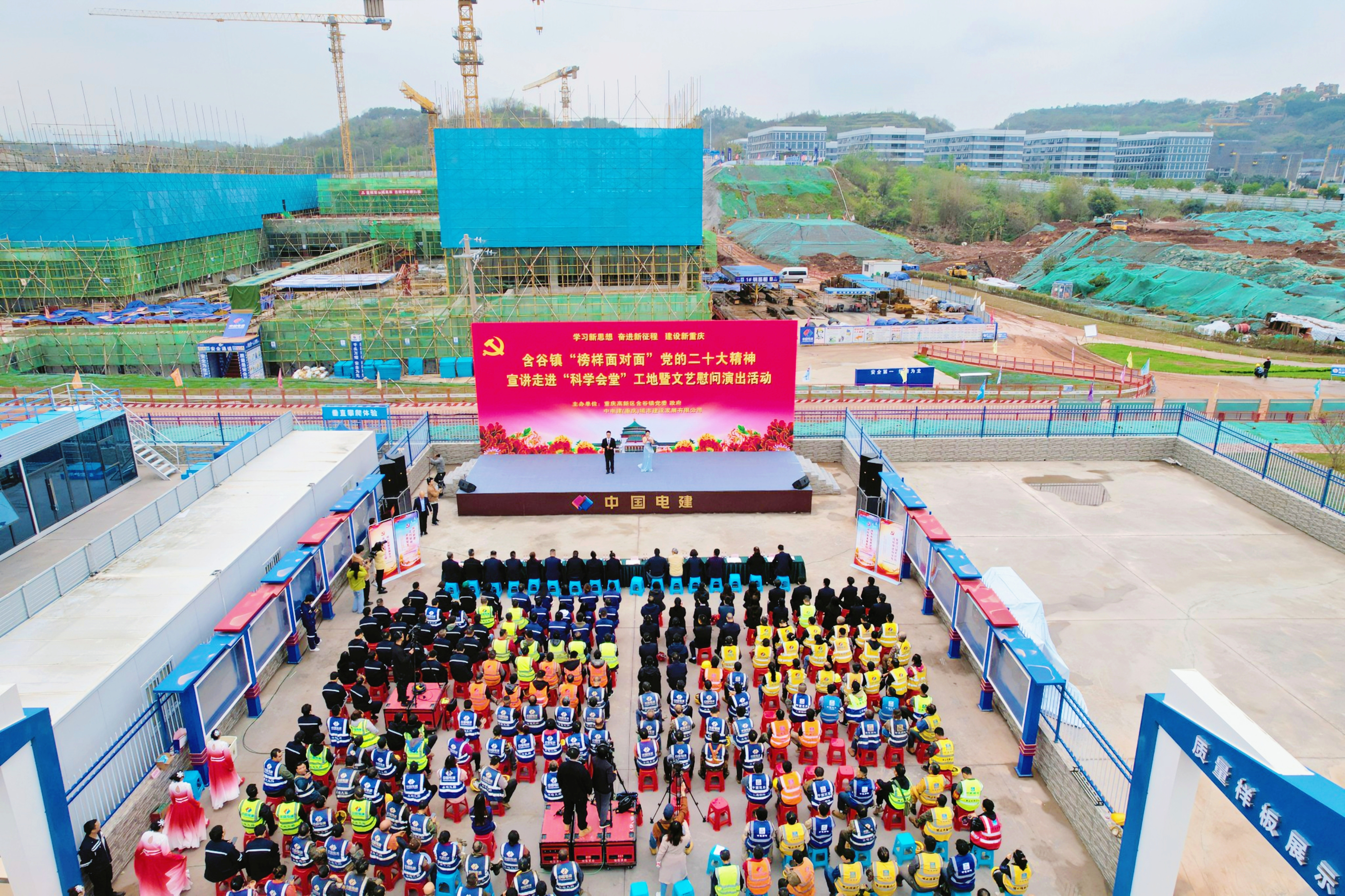 “燈火里的中國,胸懷遼闊,燈火燦爛的中國夢,燈火蕩漾著心中的歌……”一曲熱情洋溢的群舞《燈火里的中國》,拉開了重慶(西部)科學(xué)城科學(xué)會(huì)堂項(xiàng)目部“榜樣面對面”黨的二十大精神走進(jìn)“科學(xué)會(huì)堂”工地暨文藝慰問演出活動(dòng)的序幕,用建設(shè)者們通俗易懂的形式講解黨的二十大精神。 本次文藝宣講演出形式包括舞蹈、歌唱、雜技、小品,中間穿插黨的二十大精神宣講,共有《黨的二十大精神在身邊》《貫徹黨的二十大精神——讓人民群眾感受公平正義》《燈火里的中國》等12個(gè)節(jié)目,為300多名項(xiàng)目建設(shè)者送上了一場文化盛宴。活動(dòng)現(xiàn)場,演職人員將黨的二十大精神融入演出作品中,通過“文藝+宣講”讓黨的二十大精神宣傳動(dòng)起來、唱起來、活起來、火起來,將黨音“聲”入人心,進(jìn)一步激勵(lì)全體建設(shè)者聽黨話、感黨恩、跟黨走,為高質(zhì)量高效率建設(shè)項(xiàng)目勇毅前行。工友何清霞高興地說:“現(xiàn)場節(jié)目很精彩,既讓我們深入學(xué)習(xí)了黨的二十大精神,又提升了對項(xiàng)目建設(shè)的新認(rèn)識、新知識,希望以后能經(jīng)常看到這種演出和故事。”她的笑容里充滿著期待。 黨的二十大召開后,項(xiàng)目部根據(jù)報(bào)告提出的新思想、新論斷、新舉措,第一時(shí)間開展策劃,通過編印《黨的二十大精神口袋書》、開展“學(xué)習(xí)二十大、建功新時(shí)代”知識競賽、開展“學(xué)習(xí)感悟大家享”活動(dòng)、組織黨員講紅色故事等方式宣講黨的二十大精神,有效增強(qiáng)了一線建設(shè)者紅色教育沉浸式體驗(yàn),打通了理論宣講的“最后一公里”。將黨的二十大精神融入為民服務(wù)和生產(chǎn)經(jīng)營,項(xiàng)目部還持續(xù)在抓“引”促“建”上下功夫,切實(shí)提升黨建工作水平,穩(wěn)步推進(jìn)企業(yè)綠色高質(zhì)量發(fā)展,把學(xué)習(xí)黨的二十大精神成果轉(zhuǎn)化為干事創(chuàng)業(yè)的強(qiáng)大動(dòng)能。 “讓黨的二十大精神‘聲’入民心。”用建筑人員樂于接受的方式、易于理解的語言,將黨的二十大精神有效地傳播到了項(xiàng)目生產(chǎn)一線,為推動(dòng)項(xiàng)目高效優(yōu)質(zhì)履約奠定了堅(jiān)實(shí)基礎(chǔ);同時(shí),項(xiàng)目部將進(jìn)一步創(chuàng)新形式載體,在豐富多樣、生動(dòng)活潑的活動(dòng)中引導(dǎo)全體參建人員學(xué)深悟透,持續(xù)推動(dòng)黨的二十大精神在基層一線落地生根、開花結(jié)果。 |